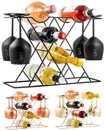 ELEGANZA IRRESISTIBILE , design moderno e geometrico del bancone del vino. Ogni portabottiglie da banco è realizzato con la nostra finitura verniciata a polvere resistente alla ruggine per protezione